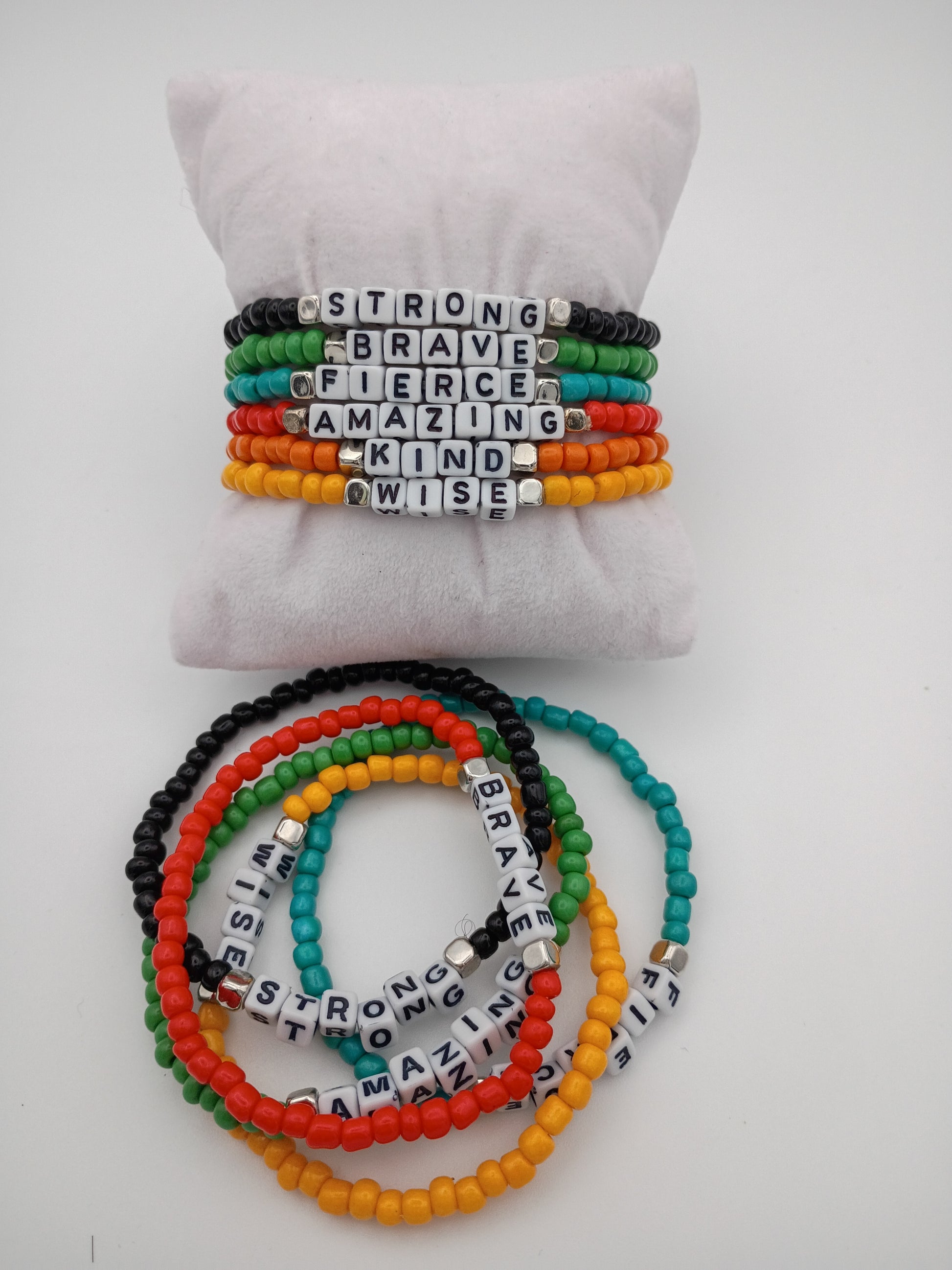 This is a 6-piece colorful set of stretchy bracelets, fits size 7 inches to 7.5 inches. This set is trendy and modern and makes a great gift for a friend or family member. You can wear one or two or wear them all.