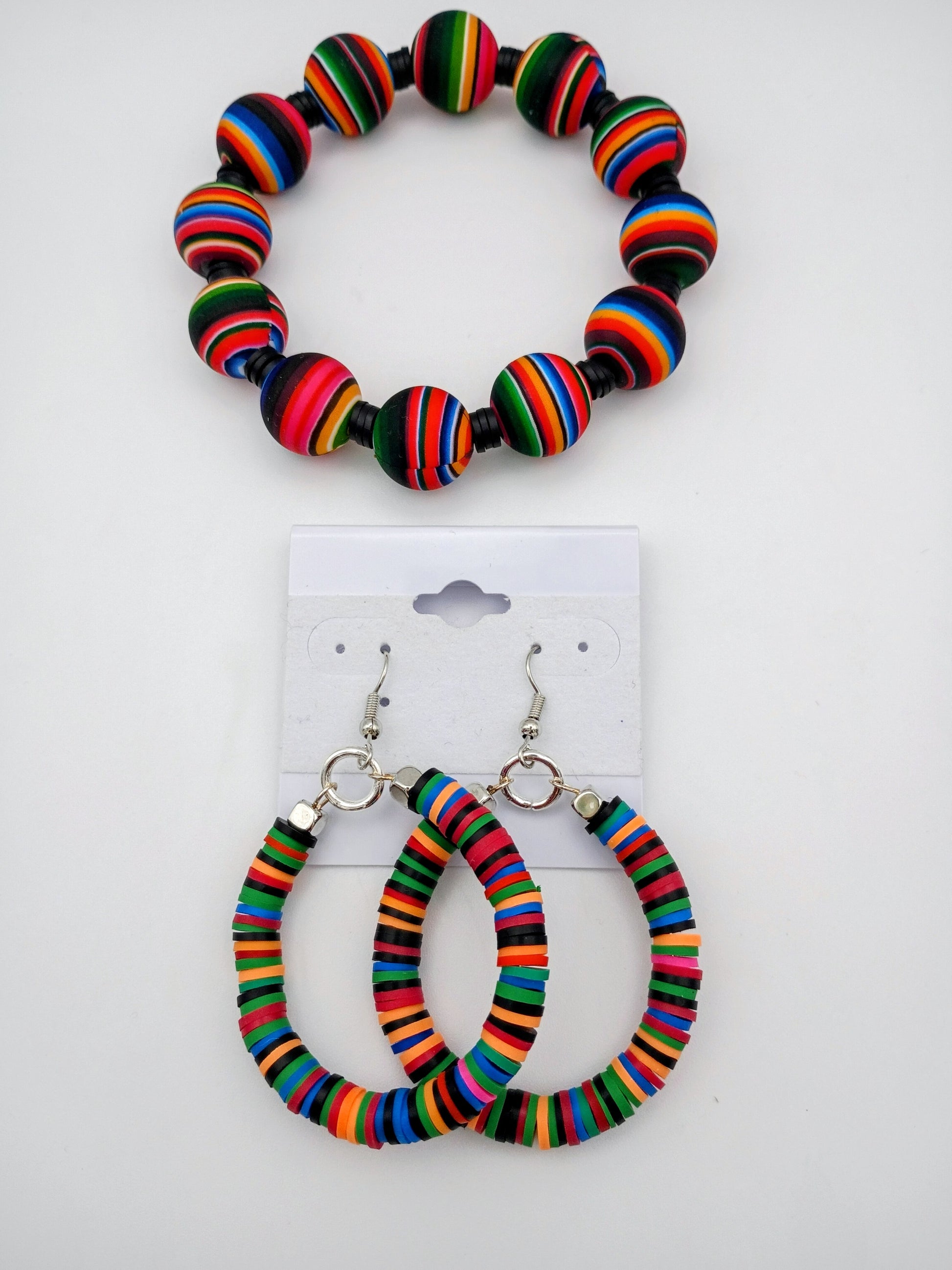 Women's BIG & BOLD stretchy beaded bracelet with matching earrings. The bracelet is 7.5 inches and the earring medium size. This bracelet and earring set is an absolute eyecatcher.
